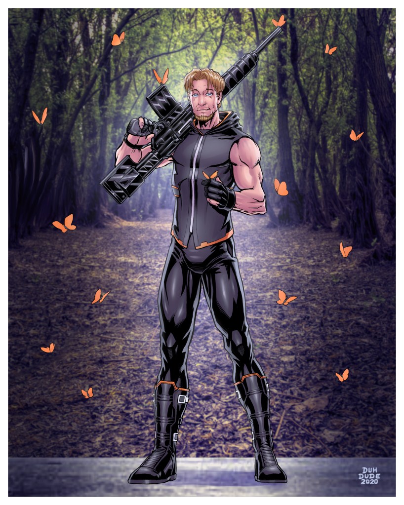 Personality: Butterfly is a mercenary, not a hero. He has a delightful sense of humor and a playful nature, but the only things he cares about are butterflies. He lives in a butterfly preserve and uses his superpower to earn enough money to live – no more. He’s fun to talk to, but he’s apathetic to human problems; his only goal in life is to be around the butterflies as much as possible, and everything he does is to further that goal. His ability makes him graceful, and he’s usually smiling. His power is hyper-proprioception, meaning that he knows exactly where everything is in the space around himself at any given time, and how things move through space. Practically, it means he has super-aim and can use anything as a projectile weapon with deadly accuracy. He also never trips, never stumbles, and never falls unless on purpose. He has been known to run through a flock of butterflies without touching a single one.